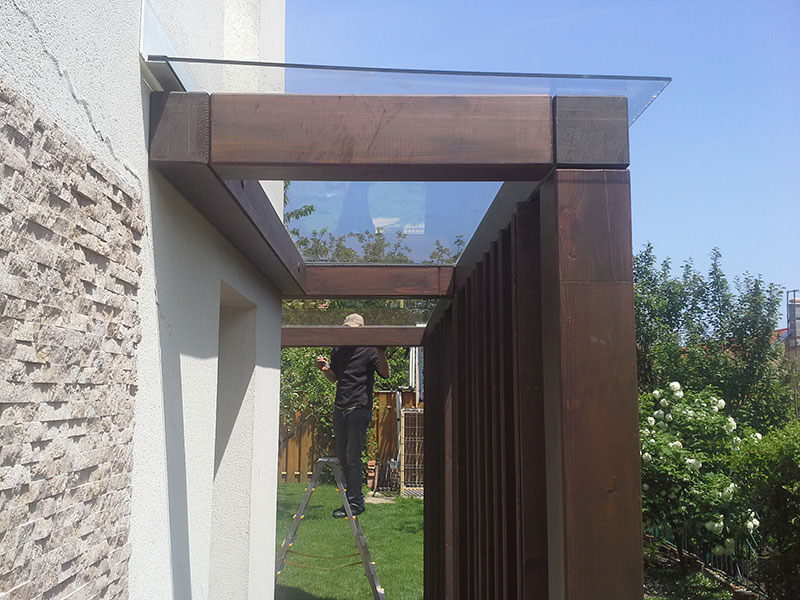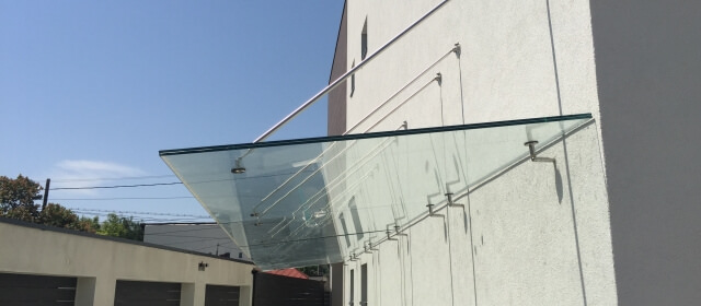 Sticla poate fi acum utilizata si sub forma de copertina. Este rezistenta la soare, ploaie, zapada si are un aspect modern. Sistemele de prindere sunt simple combinandu-se perfect cu eleganta sticlei. Se poate alege din mai multe tipuri de sticla: transparenta, parsol bronz, dark grey, sablata etc.