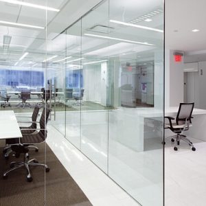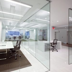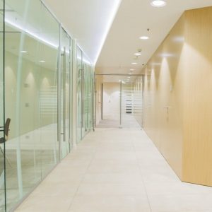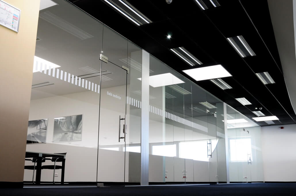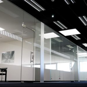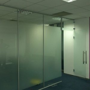 Peretii de sticla securizata sunt foarte utili pentru compartimentarea spatiilor datorita izolarii termice si fonice, dar si datorita luminii naturale care poate sa patrunda in incapere. Sticla securizata utilizata este de 10mm, feroneria este marca Dorma, feronerie de inalta calitate, iar usile din cadrul peretilor sunt cu amortizor de pardosea fiind folosite pentru trafic intens.